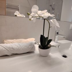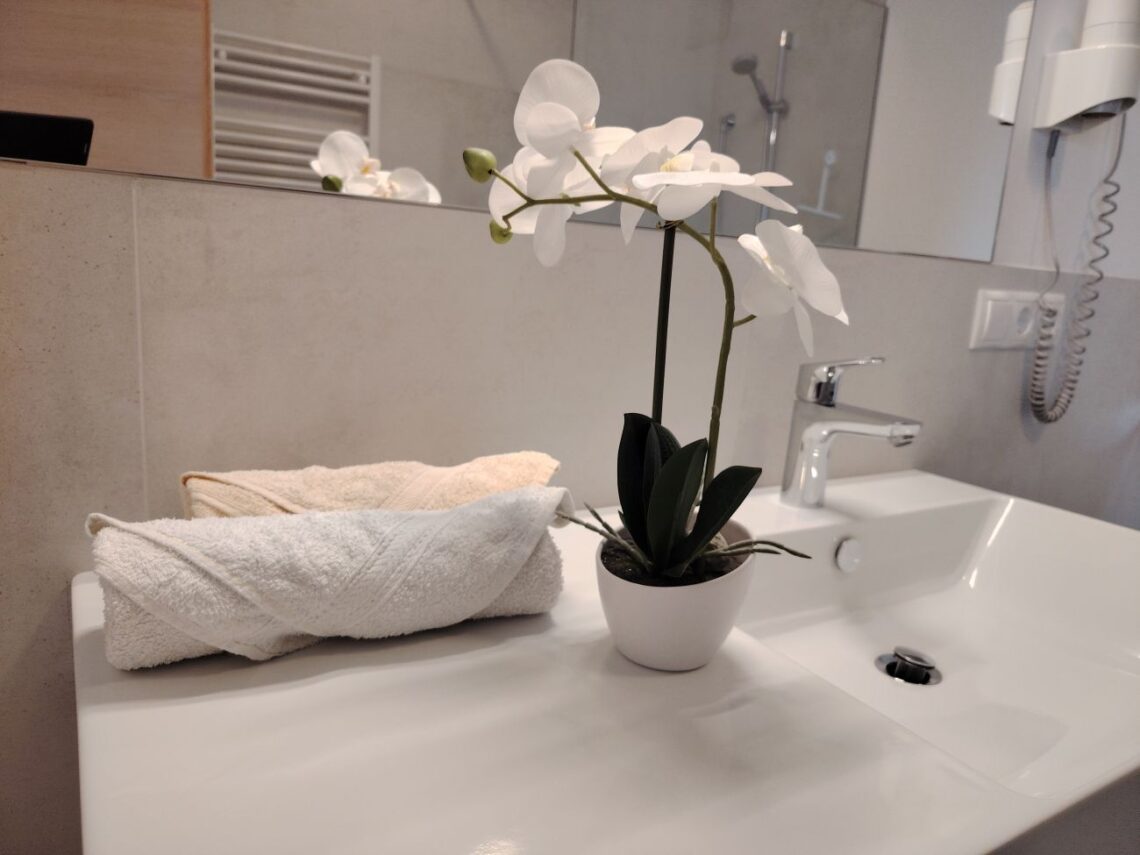 - ein großes, modernes Bad mit Bidet, Handtuchwärmer und Föhn und