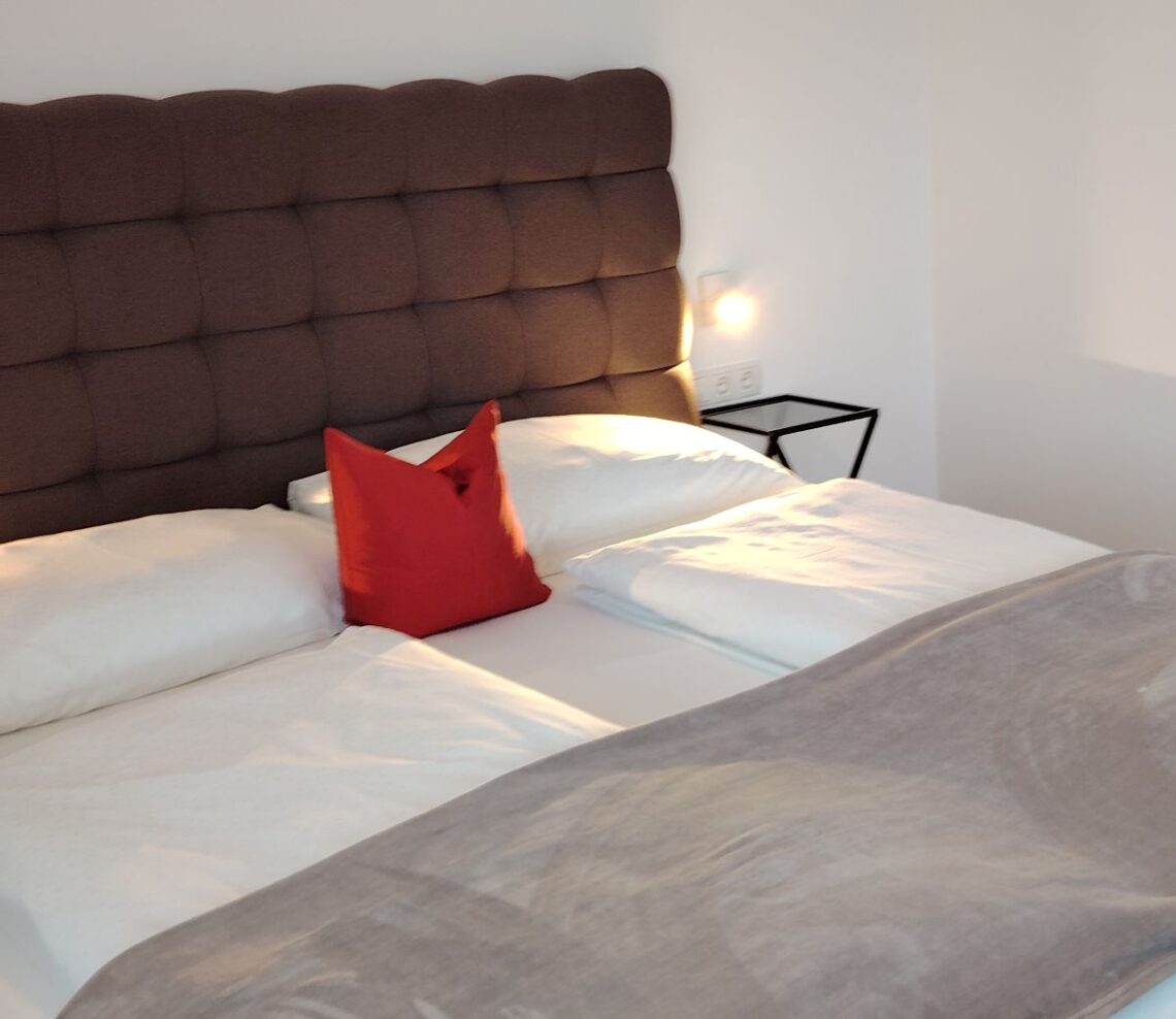 - ein sonniges Doppelbett-Schlafzimmer mit Boxspringbetten.