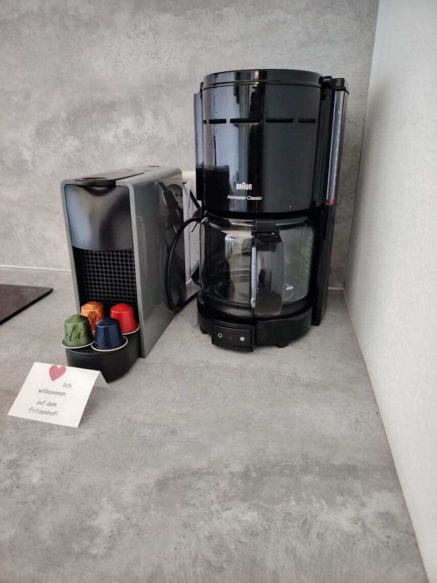 - Neu: Nespresso Kaffeemaschine (Kaffeekapseln können bei uns erworben werden)